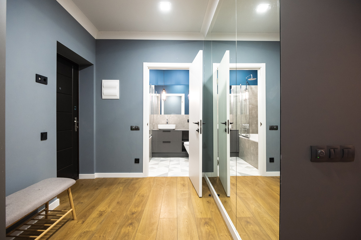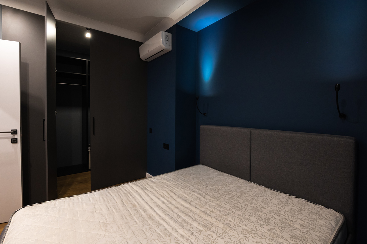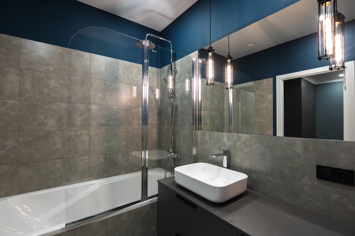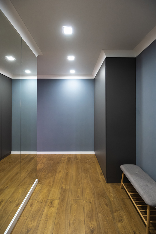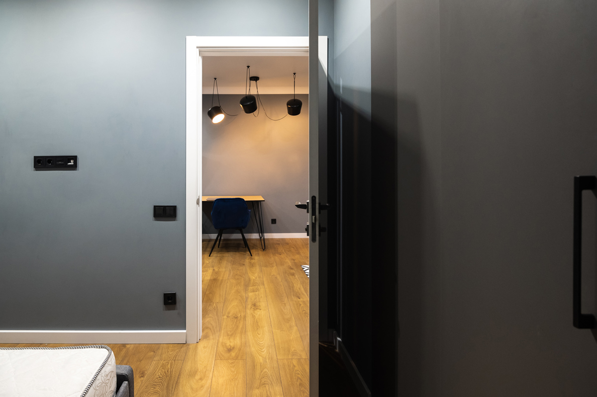 მომხმარებელს სურდა მაქსიმალურად გამოეყენებინა ბინის მთელი სივრცე. კედლები მთელ ბინაში გაშიშვლდა, ლოჯიდან ოფისი გაკეთდა, გათბობის გამომავალი. Mortise პროფილები LED განათების გამოიყენება ჭერი. აბაზანა და აბაზანა გამოყოფილია და აბაზანაში დამატებითი საშხაპე ოთახი გაკეთდა.