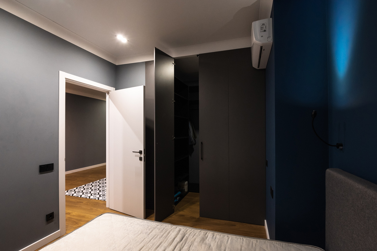 მომხმარებელს სურდა მაქსიმალურად გამოეყენებინა ბინის მთელი სივრცე. კედლები მთელ ბინაში გაშიშვლდა, დეველოპერის ყველა დანაყოფი დაანგრიეს და განლაგება მთლიანად შეიცვალა. Eurodrive ერთად საგარდერობო საძინებელი გაკეთდა ერთი ოთახი ბინა.